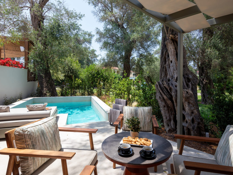 • Distance to nearest beach: 30 m (Messonghi Beach)