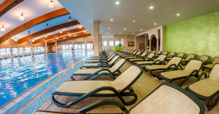 Centru Spa, cu o suprafata de 3000 mp: piscina cu apa dulce, bazin cu apa sarata, jacuzzi, sauna umeda, sauna uscata, infrasauna, bazin exterior cu apa sarata, zona de plaja, bar cu vitamine, sala de finess, cabinete masaj, hammam, salon cosmetica si intretinere corporala, salon manichiura pedichiura, coafor.