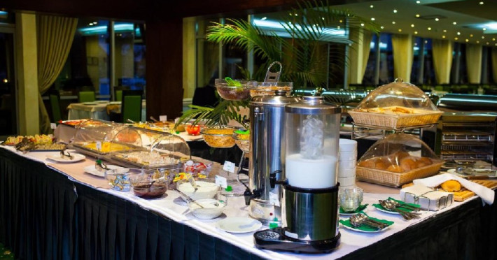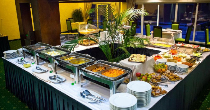 Restaurant Apollo cu 120 de locuri in salon si 40 de locuri pe terasa acoperita. Acesta ofera oaspetilor sai preparate culinare din bucataria traditional romaneasca si bucataria internationala in regim a la carte, preparate de cofetarie si patiserie (produse in laboratorul propriu de cofetarie-patiserie), servire ireprosabila intr-o ambianta placuta. De asemenea, in incinta restaurantului nu se servesc bauturi alcoolice.