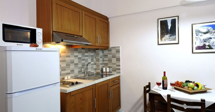 Hotelul este format din 61 de apartamente si garsoniere spatioase mobilate. Apartamentele sunt recent renovate si ofera un mediu prietenos, placut si primitor cu facilitati exceptionale si moderne. Toate sunt decorate in nuante calde. Au balcoane mari, confortabile si vedere la dealurile cu maslini, la satele din jur, la piscina sau la mare. Apartamentele sunt complet echipate pentru a satisface toate nevoile turistilor. Unitatile de cazare sunt dotate cu seif, aer conditionat, baie cu dus, uscator de par, balcon, chicineta, mini frigider, tv cu canale prin satelit.
