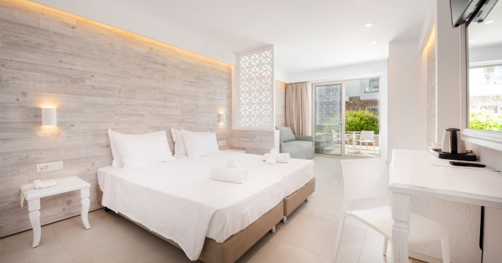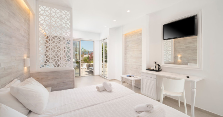 A TRADITIONAL WINDMILL CONNECT US WITH THE PAST In a beautifull area just 200 meters from the sea and 20 minutes from kos center, there is a outstanding architecture 4 star hotel, Apollon Windmill. Just at the entrance of the hotel there is a windmill which is chronoogically preceded by the principles of 1900 and can be visitied by our guests. The hotel is surrounded by an exquisite garden with palm trees, olive trees and flowers. There is a swimming pool and a pool bar where you can engoy exotic cocktails, cool refreshments and a selection of loczl wines from famous wineries of Kos. Rooms are decorated in immaculate white. Enjoy our facilities of safety box, satellite TV and fridge. Kettle and coffee-tea facilities are provided. The bathroom includes and open type shower, a hairdryer and toiletries which are provided free of charge. Guests have the opportunity to enjoy specialities from the Italian cisine at the hotel's a la carte restaurant. There is also a Greek Mediterranean cuisine at our sister hotel Apollon. Our guests may reach Apollon Hotel, crossing the inner path of palm trees which is between the two hotels. Kos harbor is 1,5 km from the hotel and the international airport ''Hippocrates'' is 21 km away. At Apollon Windmill there are a 24 hours front desk, free internet access in the public areas and free parking lot.A TRADITIONAL WINDMILL CONNECT US WITH THE PAST In a beautifull area just 200 meters from the sea and 20 minutes from kos center, there is a outstanding architecture 4 star hotel, Apollon Windmill. Just at the entrance of the hotel there is a windmill which is chronoogically preceded by the principles of 1900 and can be visitied by our guests. The hotel is surrounded by an exquisite garden with palm trees, olive trees and flowers. There is a swimming pool and a pool bar where you can engoy exotic cocktails, cool refreshments and a selection of loczl wines from famous wineries of Kos. Rooms are decorated in immaculate white. Enjoy our facilities of safety box, satellite TV and fridge. Kettle and coffee-tea facilities are provided. The bathroom includes and open type shower, a hairdryer and toiletries which are provided free of charge. Guests have the opportunity to enjoy specialities from the Italian cisine at the hotel's a la carte restaurant. There is also a Greek Mediterranean cuisine at our sister hotel Apollon. Our guests may reach Apollon Hotel, crossing the inner path of palm trees which is between the two hotels. Kos harbor is 1,5 km from the hotel and the international airport ''Hippocrates'' is 21 km away. At Apollon Windmill there are a 24 hours front desk, free internet access in the public areas and free parking lot.