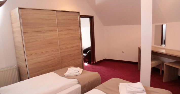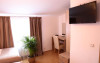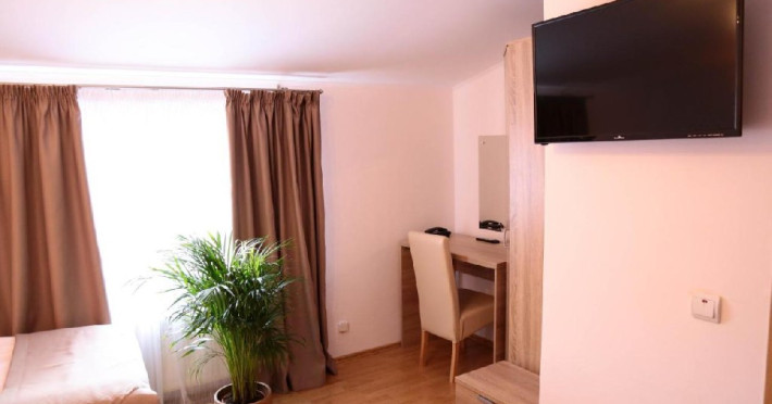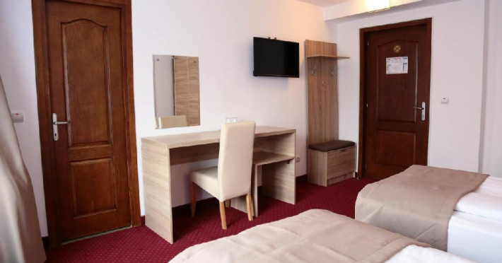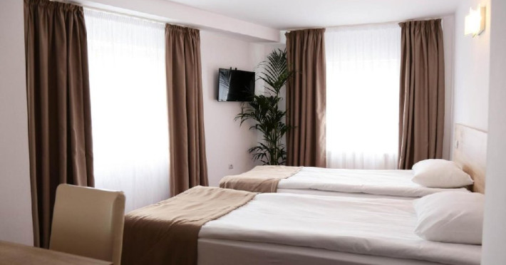Facilitati si servicii: camere largi si spatioase, personal calificat, Tv, telefon international, minibar, internet gratuit in camera si wireless in spatiile publice, room-service, supraveghere video in spatiile publice si exterior, parcare interioara, baie cu dus in toate camerele, incalzire centrala, climatizare in spatiile publice, seif receptie.