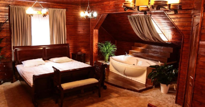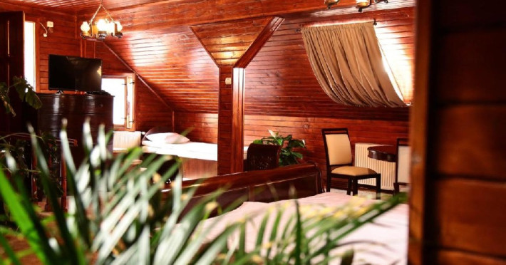 Suita (36 mp) - O camera foarte speciala decorata in lemn, cu un pat king size, jacuzzi si sauna, ideala pentru escapade romantice. Peretii camerei sunt acoperiti de lemn ceea ce confera o caldura si o iluminare foarte speciala.