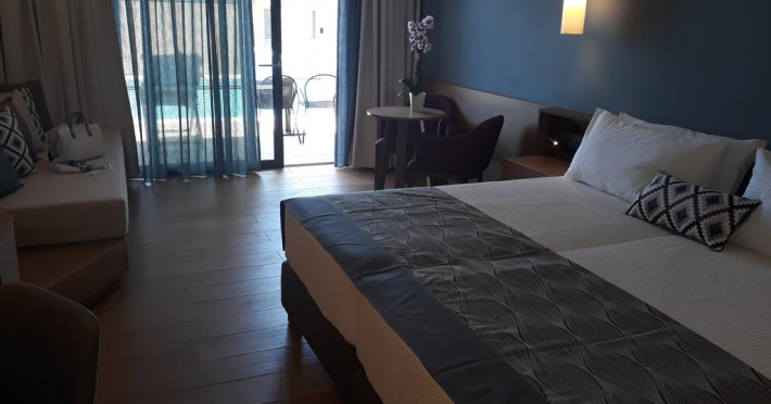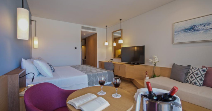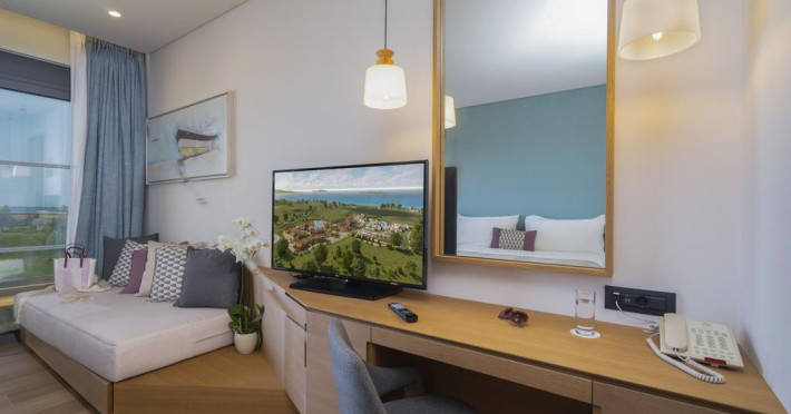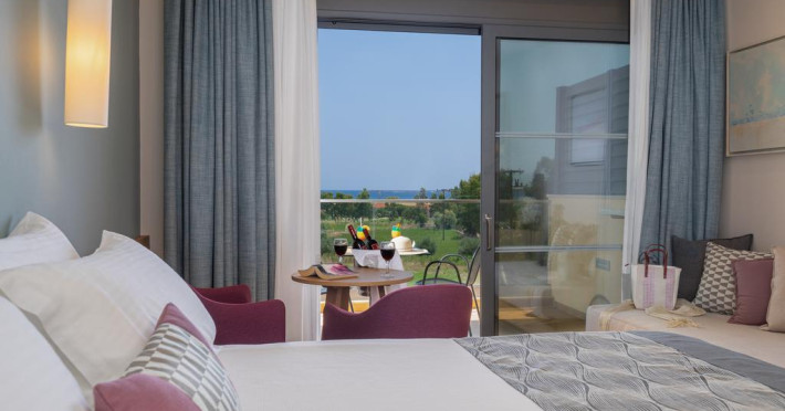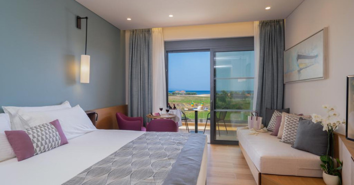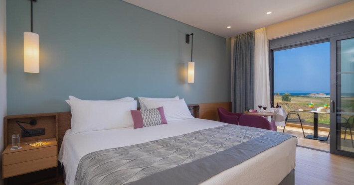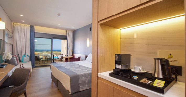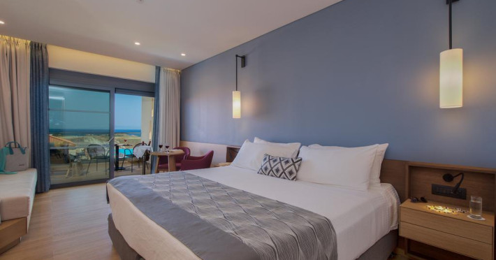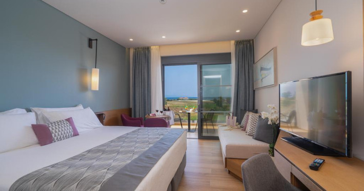 Sunt disponibile 127 camere. Camerele confortabile de la Apollonion Asterias Resort & Spa au pardoseală de gresie/ marmură, aer condiționat, Tv cu canale prin satelit și seif. Un minibar și o mașină pentru preparare cafea sau ceai se află în fiecare cameră. Oaspeții pot solicita serviciul de room service pentru a servi masa sau diverse băuturi. În camere există baie cu cadă sau duș ce are în dotare foehn și articole de toaletă gratuite. Camerele au balcon cu vedere la piscină sau la grădină. Curățenia in cameră se face zilnic. Proprietatea oferă camere pentru familie cu o suprafață mai mare și un număr mai mare de paturi față de cele standard.