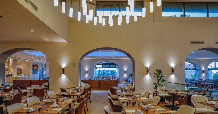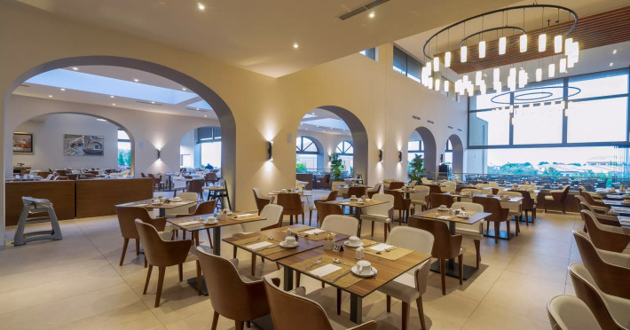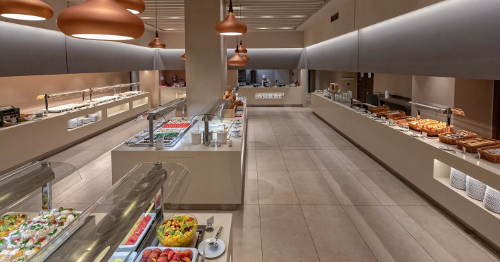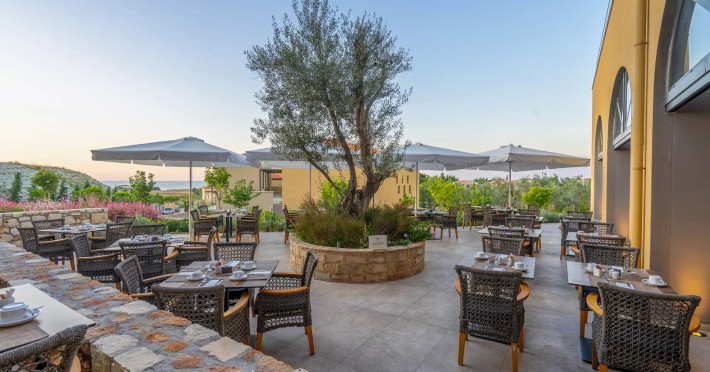 La Apollonion Asterias Resort & Spa oaspeții au la dispoziție 3 restaurante unde pot savura mâncăruri delicioase, în stil bufet sau à la carte. Preparate din bucătăria mediteraneeană și italiană sunt preparate zilnic. Masa poate fi servită atât în interior, cît si în aer liber, pe terasă, în funcție de vreme. 3 baruri, dintre care unul la piscină, sunt disponibile cu o ofertă variată de băuturi răcoritoare și alcoolice. Pentru cei cu anumite nevoi de nutriție, Apollonion Asterias Resort & Spa oferă meniuri pentru diete speciale.