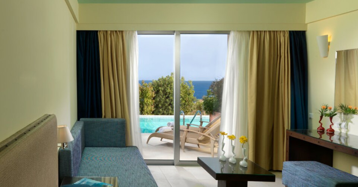 The hotel, which is situated on the South-East coast of the island of Kefalonia, is set on a hillside which slopes gently to the sea, offering breathtaking panoramic views. The resort is within short distance of all the attractions and points of interest. It is situated just 4 km away from the charming resort of Skala, where long sandy beaches can be found, and only 7 km away from the picturesque village of Poros. A complimentary shuttle bus service to both places is offered. ROOMS: Deluxe Family Room Sea View 2-4 pax, max 4 adults Deluxe Twin Room Swim-Up Side Sea View 2-3 pax, max 3 adults Family Room Garden View 2-4 pax, max 4 adults Family Room Sea View 2-4 pax, max 4 adults Standard Room Garden View 2-2 pax, max 2 adults Standard Room Sea View 2-2 pax, max 2 adults Suite Sea View with Indoor Jacuzzi 2-3 pax, max 3 adults Suite Sea View with Private Pool 2-3 pax, max 3 adults Superior Room Sea View 2-3 pax, max 2 adults Superior Room Side Sea View 2-3 pax, max 3 adults Villa with Private Pool and Indoor Jacuzzi 2-6 pax, max 5 adultsDatorita dinamicitatii domeniului disponibilitatea ofertelor se modifica de la un moment la altul. De aceea ofertele sunt valabile in limita locurilor disponibile. Agentia nu este responsabila pentru eventualele neconcordante care pot aparea intre informatiile privind tarifele si alte detalii din site si informatiile primite in agentie. In aceste cazuri vor avea prioritate, intotdeauna, informatiile primite in agentie.
