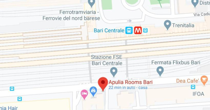 Popular points of interest near Apulia Rooms Bari include Bari Central Train Station, Teatro Margherita and Bari Cathedral. The nearest airport is Bari Karol Wojtyla Airport, 10 km from the accommodation.