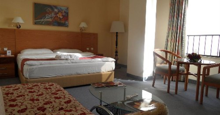 Informatii generale: situat chiar langa hotelul Movenpick, Aqaba Gulf este un hotel standard aflat in centrul orasului dar dispune de piscina si a fost renovat recent. Localizare: hotelul Gulf, cu vedere la Golful Aqaba, este situat la 5 minute de mers pe jos de centrele comerciale i restaurantele din centrul orasului Aqaba Dotari camere: 207 camere spatioase si elegante echipate cu TV cu ecran plat, minibar, seif gratuit, aer conditionat, facilitati pentru preparerea de ceai si cafea, baie cu uscator de par. Camerele standard nu au balcon iar camerele superior au balcon. Facilitati hotel: o psicina exterioara inconjurata de sezlonguri, restaurant principal ce ofera buffet international, restaurant a la carte, cafenea-bar, o mica gradina, teren de tenis, terasa, inchiriere de masini si biciclete, parcare gratuita. Plaja: Hotelul nu dispune de plaja privata dar hotelul asigura transport si intrare la plaja privata Berenice Beach Club (10 usd/persoana/zi incuzand intrarea la plaja, sezlonguri, prosoape, piscine, transfer dus-intors). Tot aici se pot face diverse sporturi pe apa (conta-cost), scufundari, plimbari cu vaporasul. Tip masa: demipensiune Pagina web: http://www.aqabagulf.com/Datorita dinamicitatii domeniului disponibilitatea ofertelor se modifica de la un moment la altul. De aceea ofertele sunt valabile in limita locurilor disponibile. Agentia nu este responsabila pentru eventualele neconcordante care pot aparea intre informatiile privind tarifele si alte detalii din site si informatiile primite in agentie. In aceste cazuri vor avea prioritate, intotdeauna, informatiile primite in agentie.