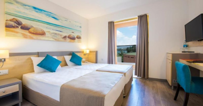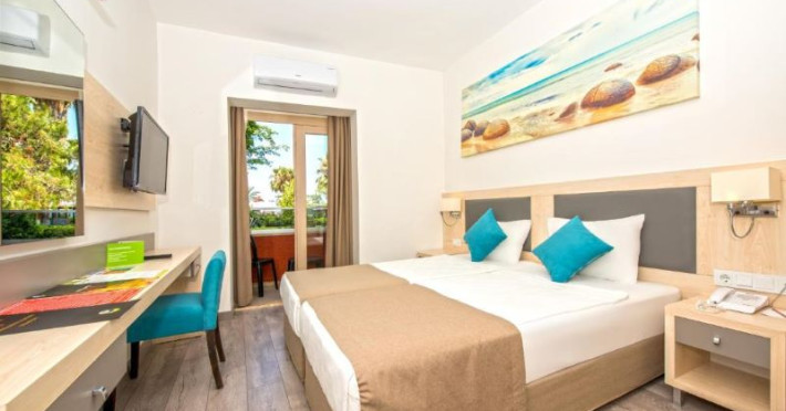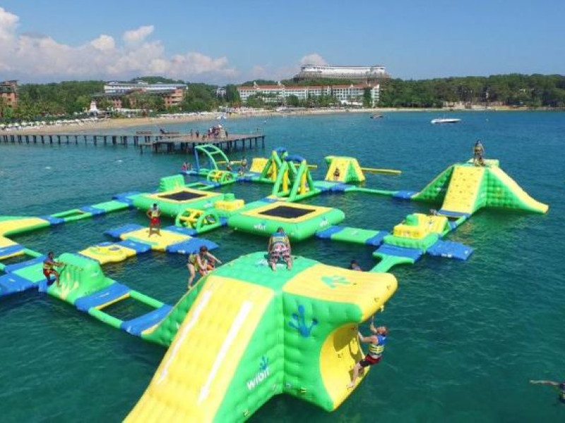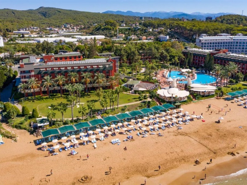 Hotelul vă întâmpină cu o plajă privată exclusivă, un restaurant sofisticat, un Mini Club și o mini discotecă pentru a vă asigura că întreaga familie se bucură de o experiență memorabilă. Cu dotări precum Aquapark, piscine, sală de ședințe, restaurant, snack bar și diverse baruri, hotelul este proiectat pentru a vă oferi o vacanță cu adevărat unică. În plus, locul de joacă dedicat copiilor cu vârste între 4 și 12 ani și piscina specială pentru cei mici adaugă o notă de bucurie pentru cei mici. Gama variată de activități, inclusiv animație pe tot parcursul zilei, sesiuni de dimineață, stretching, polo pe apă, baschet, tenis de masă, jocuri de societate, turnee zilnice, tir cu arcul, volei pe plajă, boccia, acvagym, dart, biliard, aerobic și shuffleboard, asigură distracție și pentru toate preferințele.