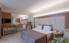Facilitati camere: Camerele sunt dotate cu cu 2 paturi, pat suplimentar: 1 (adult/copil), baie proprie (cada sau dus, uscator de par, WC), aer conditionat central, telefon, TV satelit, minibar, alimentarea: contra cost, seif in camera: contra cost, balcon.