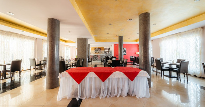 Restaurantul din cadrul hotelului ofera 80 de locuri unde se pot servi diverse preparate culinare atent pregatite de catre maestrii bucatari.