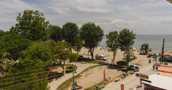 Oaspeții se pot relaxa pe terasa de la Aqua Beachfront Elegant.