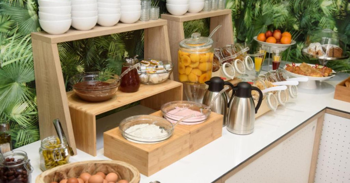 Aqua Beachfront Elegant servește zilnic un mic dejun tip bufet în zona de luat masa. La proprietate există o cafenea care oferă cafea, băuturi și gustări. Masa poate fi servită atât în interior, cît si în aer liber, pe terasă, în funcție de vreme.