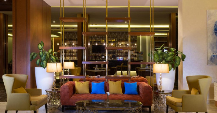 Facilitati: living separate de dormitor, minibar, seif, telefon, baie proprie cu dus uscator de par articole toaleta, TV cu ecran plat prin satelit, sistem de incalzire, ceainic, sifonier, prosoape, lenjerie, serviciu prosoape/ lenjerie contra cost, aer conditionat, ventilator, pardoseala gresie/ marmura, wake-up service