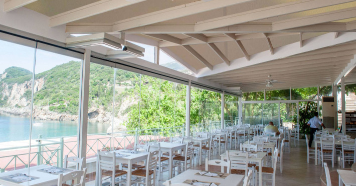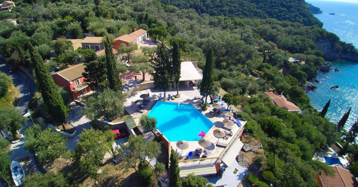 Hotelul Aqua Blue face parte din Complexul Ninos și se află langă satul tradițional Liapades, intr-o locație liniștită idilică pe malul mării, pe coasta de vest a Corfu.