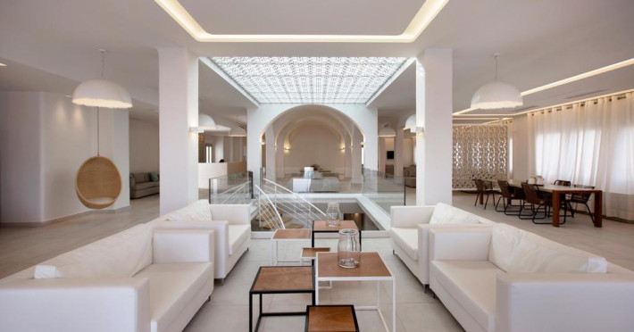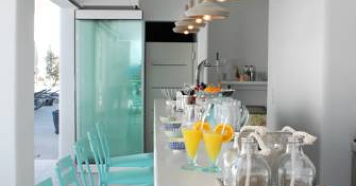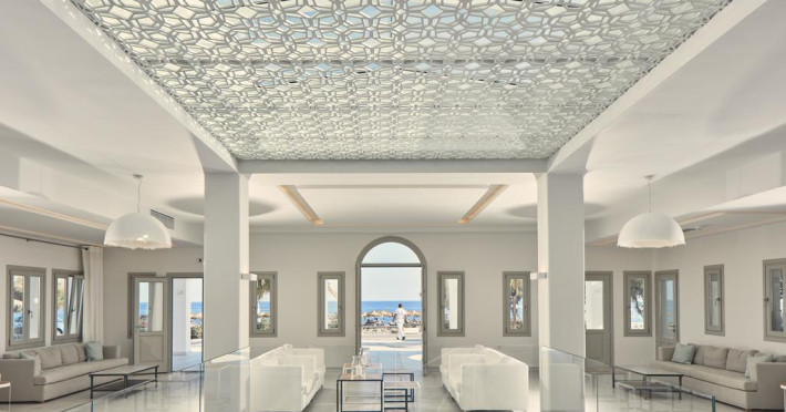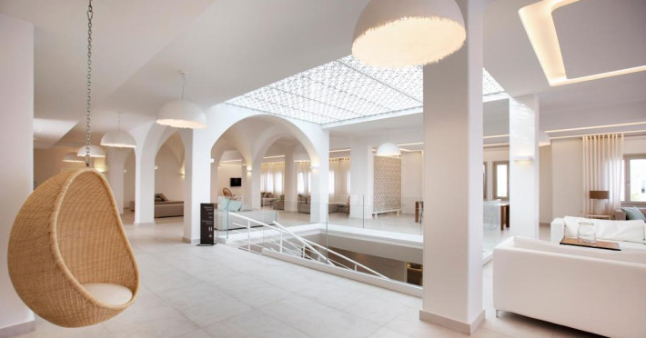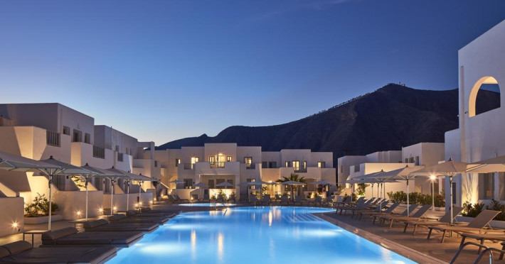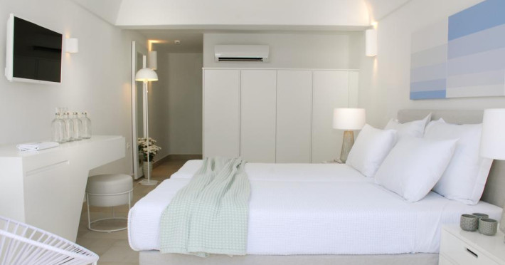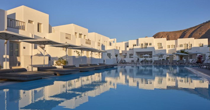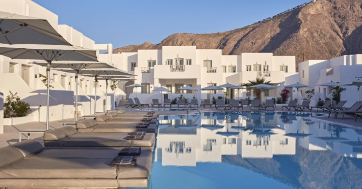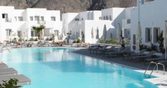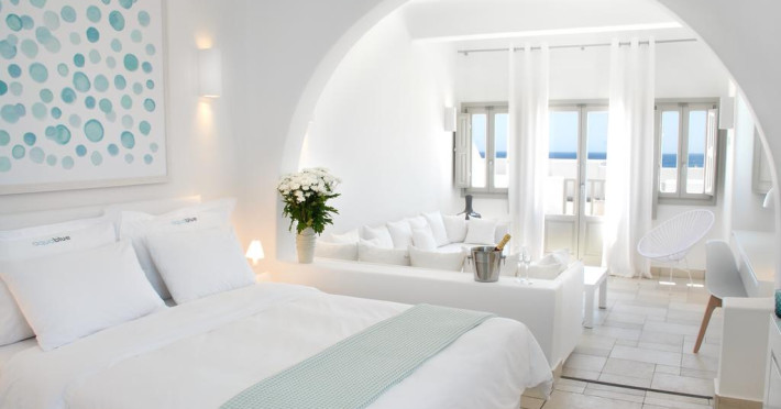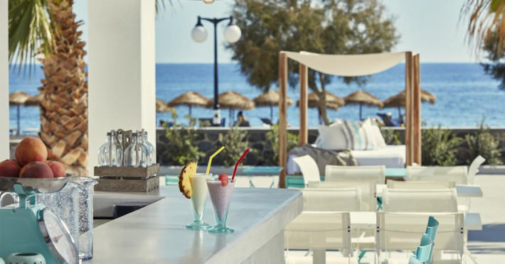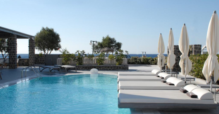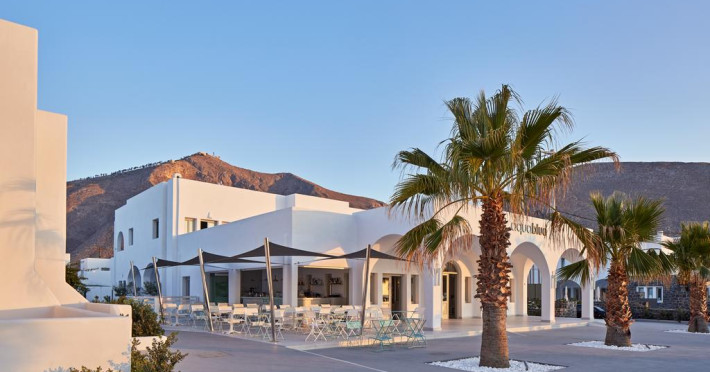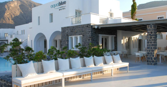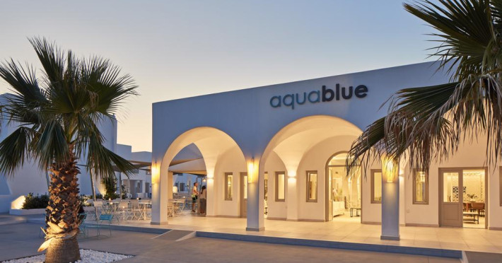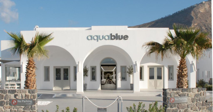 Aqua Blue este o proprietate de 4 stele care se află pe malul mării, în Perissa (Santorini), și oferă piscină în aer liber cu șezlonguri și umbrele de soare, precum și centru spa/wellness care asigură servicii pentru un sejur extrem de relaxant. Facilitățile de la Aqua Blue includ sală de fitness și business center. Proprietatea are, de asemenea, servicii de recepție cu program non - stop, concierge și închirieri auto. Se oferă acces gratuit la internet Wi-fi în spațiile publice. Parcarea este posibilă pe stradă, în imediata apropiere a proprietății.