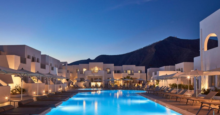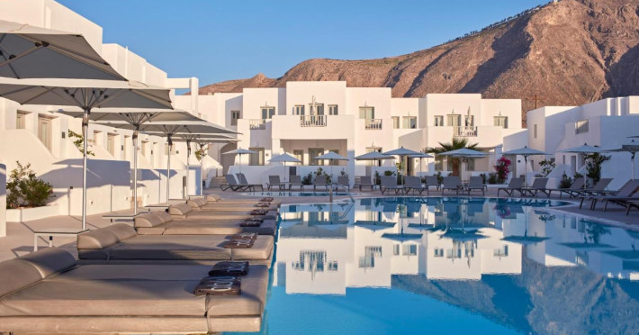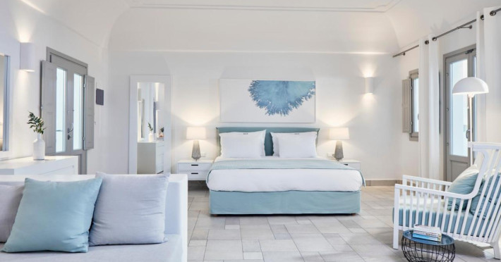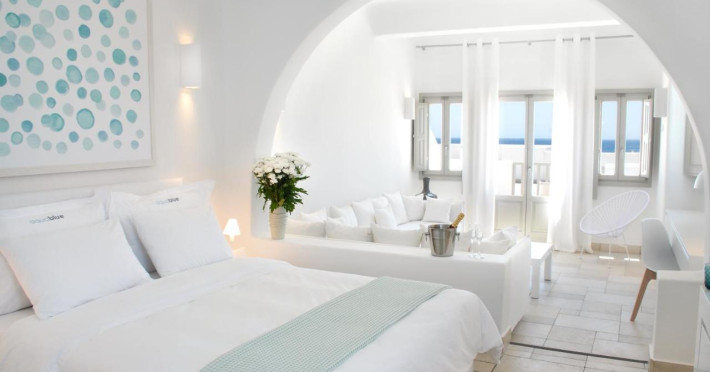 Hotelul Aqua Blue 5* se afla in statiunea Perissa, pe plaja, la 550 m de Waterpark Santorini si plaja Perissa.Localizare