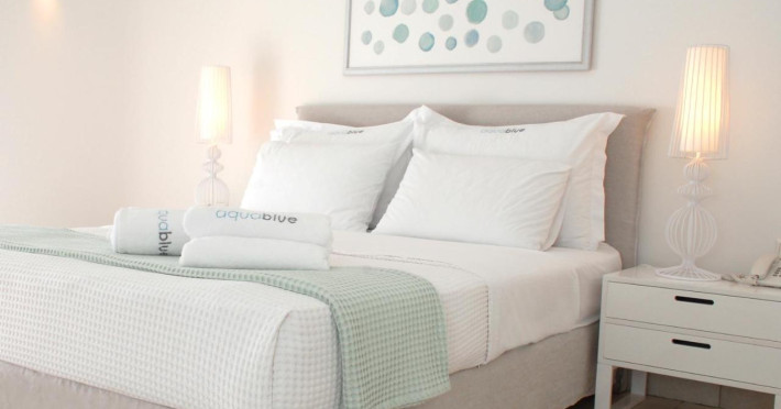 Situat pe plaja Perissa, Hotelul Aqua Blue Beach are o zonă de plajă privată, cu șezlonguri și umbrele de soare. Fira, capitala plină de viață a insulei Santorini, se află la 15 km, iar aeroportul și portul Santorini sunt la 20 de minute de mers cu mașina. În apropierea hotelului se pot găsi restaurante și facilități de sporturi acvatice și alte opțiuni de divertisment.