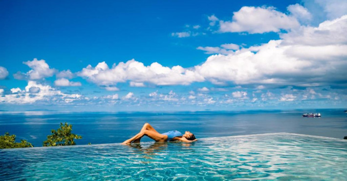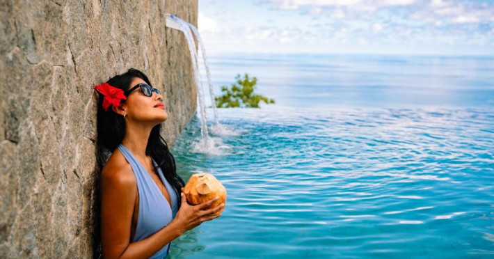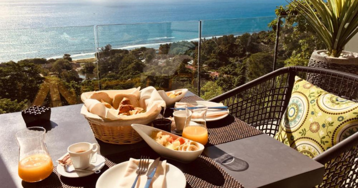 Restaurantul hotelului servește preparate din bucătăria internațională și creolă, cu accent pe fructe de mare proaspete. Piscina infinity oferă priveliști spectaculoase spre Oceanul Indian, iar barul de la piscină este locul perfect pentru un cocktail la apus.