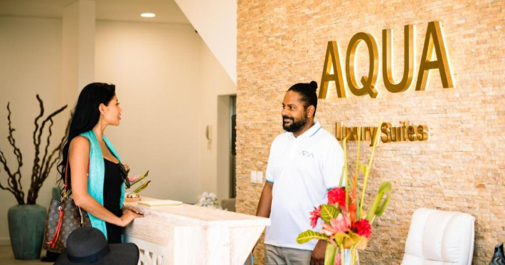 AQUA Boutique Hotel se află in Beau Vallon, una dintre cele mai apreciate zone din Mahe, Seychelles. Poziționat la doar 2 minute de mers pe jos de plaja cu nisip alb din Beau Vallon, hotelul oferă un refugiu intim și elegant pentru oaspeții săi.