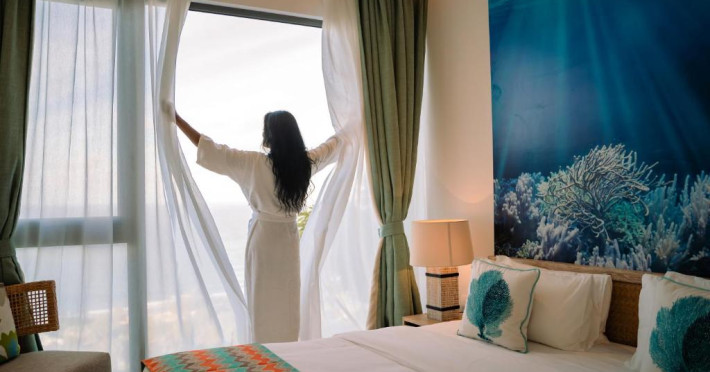 Camerele moderne sunt decorate in nuanțe marine și dispun de balcoane private cu vedere spre ocean sau grădină. Fiecare unitate este dotată cu aer condiționat, TV cu ecran plat și mini-bar.
