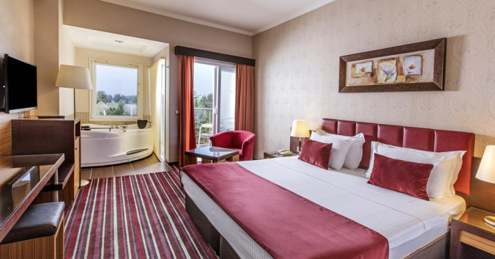 Cadă, foehn, halat și papuci de camera (hotel deluxe room), aer condiționat centralizat (hotel), aer condiționat individual (club), televizor, telefon, mini-bar (contra cost), seif (contra cost), pardoseală – mochetă (hotel), pardoseală – gresie (club), balcon, servicii curățenie în camere – zilnic, schimbarea lenjeriei – 2 ori/săptămâna.