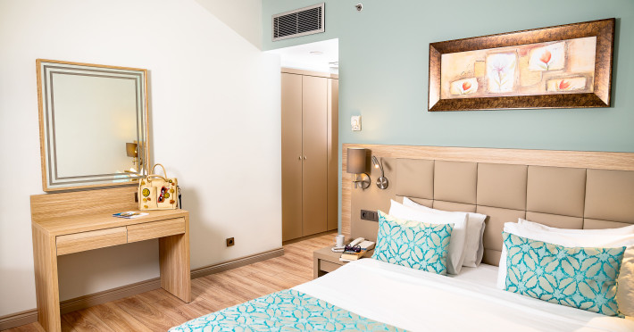 The hotel Aqua Fantasy Aquapark Hotel Spa is located approximately 500 m from the private beach. The city centre is around 11 km away. A supermarket is around 7 km away. On the beach are cushions, sun umbrellas and beach towels available. At the beThe hotel Aqua Fantasy Aquapark Hotel Spa is located approximately 500 m from the private beach. The city centre is around 11 km away. A supermarket is around 7 km away. On the beach are cushions, sun umbrellas and beach towels available. At the beach there is a bar serving refreshing drinks. The hotel is equipped with a 24h reception, a lobby bar, Wi-Fi, a lift, a supermarket, a hairdresser, a first aid kit as well as parking spaces. In the outdoor area of the property you will find a pool that is open seasonally (open from April to October), where sun loungers and sun umbrellas are available for free. For children there is also a separate childrens pool. Inside the hotel you can use an indoor pool. For your entertainment, the hotel offers a disco. For very young guests, highchairs can be provided. For the smallest children prams can be rented in the hotel. You can store your luggage in the hotels storage room. There is also a laundry service available at an additional cost to customers. For your comfort the hotel page will ensure you are looked after. If necessary, you can contact the medical centre (for a fee). The energy supply is 220 Volts. If you want to explore the holiday region, you can use the car rental service close to the hotel (extra fee). Catering Breakfast is offered from the buffet. Lunch and dinner are also served from the buffet. When booking all-inclusive, - for an extra fee - one meal in the à la carte restaurant is included. Your physical well-being is catered for by the pool bar. Appropriate clothing is required for lunch and dinner. Distances Airport: approx. 70 km Port: approx. 13 km Pharmacy: approx. 6 km Hospital: approx. 6,5 km Sports amp; Leisure To keep your fitness up on holiday, there is a gym for guests to use. A minigolf course offers fun for the family. For an fee, you can take advantage of various water sports. If you dont want to miss out on training with a ball during your holidays, youll find the chance to play basketball. During your holiday you can also take part in aerobics and Zumba courses. There is also the option to play bowling. With beach volleyball, darts (extra fee) and boccia (extra fee) various other sports offer a lot of variety on holiday. In addition to a tennis court with floodlighting there is also a tennis school and a tennis rental. A sauna (extra fee) awaits you in the wellness area. The hotel also offers massages (extra fee). Children can be looked after in the hotels own miniclub. Junior hotel guests can let off steam in the mini disco. In terms of adult entertainment, shows are organized in the evening and there is a games room available to use. Additional information The 3-storey accommodation has a total of 586 rooms. Check-in is possible from 14 hrs, check-out until 12 hrs.Datorita dinamicitatii domeniului disponibilitatea ofertelor se modifica de la un moment la altul. De aceea ofertele sunt valabile in limita locurilor disponibile. Agentia nu este responsabila pentru eventualele neconcordante care pot aparea intre informatiile privind tarifele si alte detalii din site si informatiile primite in agentie. In aceste cazuri vor avea prioritate, intotdeauna, informatiile primite in agentie.