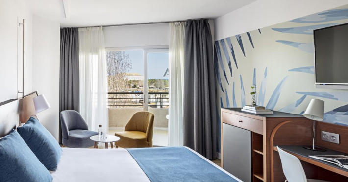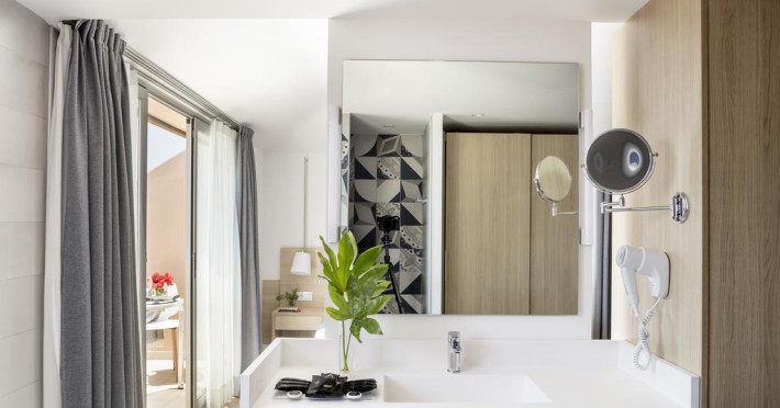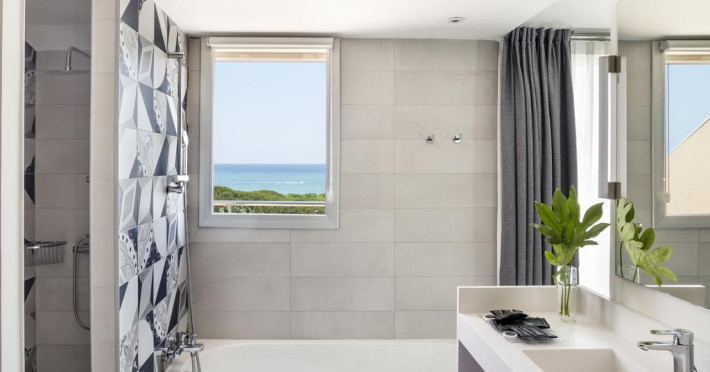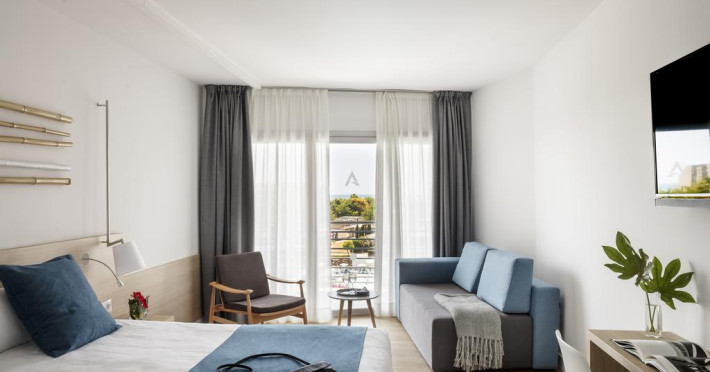 Camerele confortabile de la Aqua - Hotel Aquamarina & Spa au pardoseală de gresie/ marmură, aer condiționat, Tv cu canale prin satelit și seif. În camere există baie cu cadă sau duș ce are în dotare foehn și articole de toaletă gratuite. Unele camere au balcon cu vedere la mare sau la piscină. Fiecare cameră dispune de minibar. Oaspeții pot solicita serviciul de room service pentru a servi masa sau diverse băuturi. Oaspeții au acces gratuit la serviciul Wi-fi în camere. Curățenia in cameră se face zilnic. Toate camerele spațioase de la Aqua - Hotel Aquamarina & Spa au zonă de relaxare cu canapea, ceea ce oferă un plus de confort. Proprietatea oferă camere pentru familie cu o suprafață mai mare și un număr mai mare de paturi față de cele standard. Se pot rezerva de asemenea camere pentru nefumători.