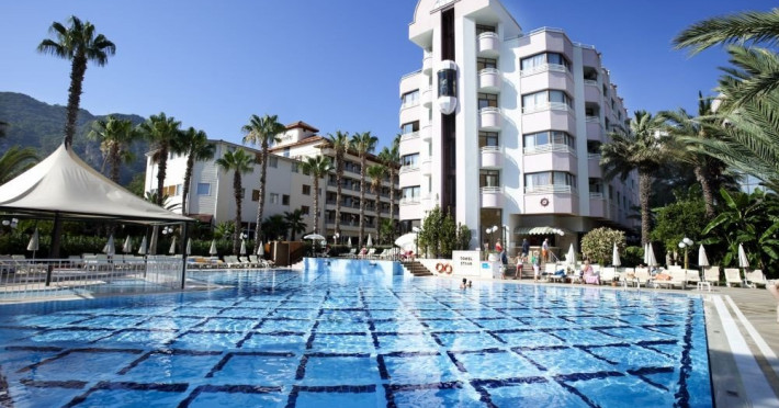 Descriere: Acest Hotel spectaculos de 5* este situat pe coasta de sud-vest a Turciei, unde se intalnesc Marea Egee cu Mediterana. Hotelul Aqua este situat la doar 7 km de centrul orasului Marmaris si la 137 km de Aeroportul Milas din Bodrum. Cu o pozitie de invidiat pe malul marii, hotelul este in apropierea tuturor atractiilor pe care Icmeler le ofera cu generozitate: magazine, viata de noapte, restaurante si baruri, obiective turistice. Camerele confortabile, preparatele culinare rafinate, un centru SPA si wellness renumit, combinate cu vederi spectaculoase si servicii de neegalat, va garanteaza un sejur perfect si amintiri de neuitat.Pagina web: http://www.hotelaqua.com
