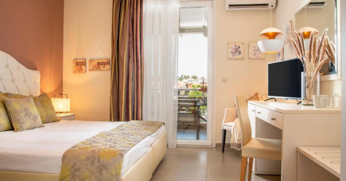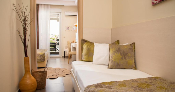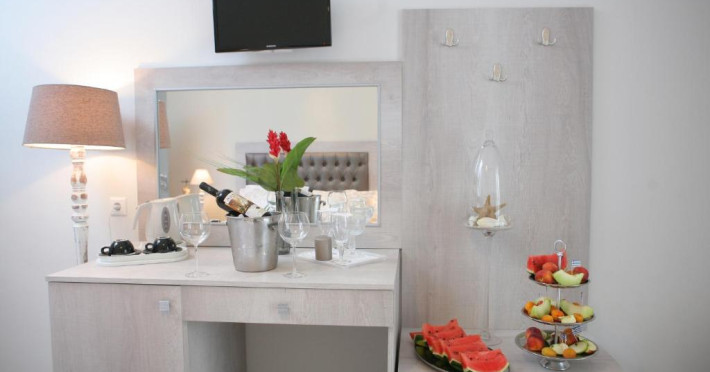 Camerele hotelului sunt dotate cu aer condiționat, dulap, fierbător, frigider, seif, TV cu ecran plat, baie privată cu duș, precum și balcon. Toate camerele Hotelului Aqua Mare au lenjerie de pat si prosoape.