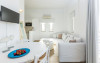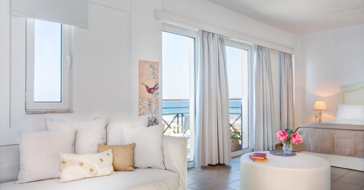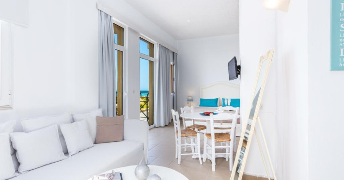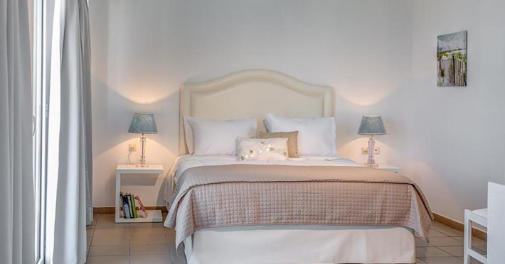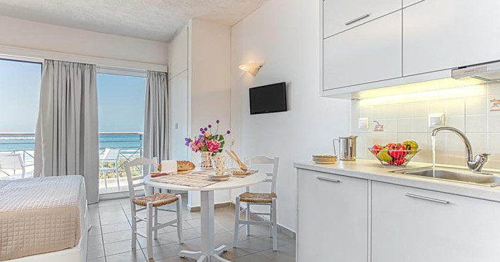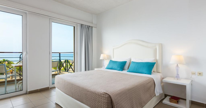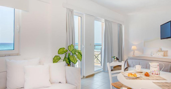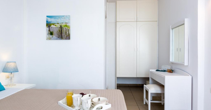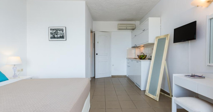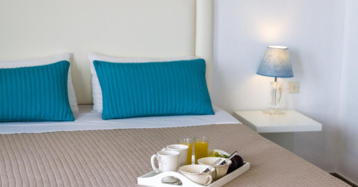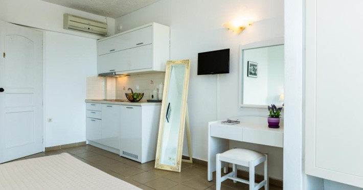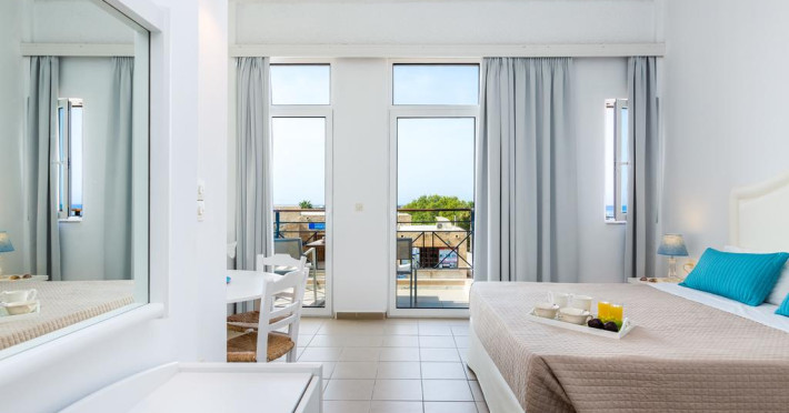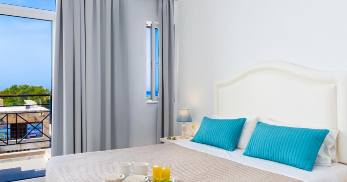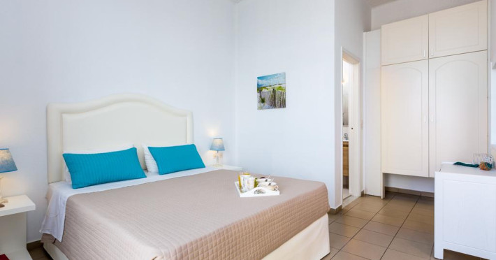 Sunt disponibile 10 camere. Fiecare cameră dispune de mașină pentru preparare cafea sau ceai și fierbător Camerele confortabile de la Aqua Marina Hotel sunt dotate cu pardoseală de gresie/ marmură, aer condiționat, Tv și seif. În camere există baie cu cadă sau duș ce are în dotare foehn și articole de toaletă gratuite. Unele camere au balcon cu vedere la mare, unde oaspeții pot admira apusul sau răsăritul soarelui. Oaspeții au acces gratuit la serviciul Wi-fi în camere. Curățenia in cameră se face zilnic. În fiecare unitate de cazare există o bucătărie utilată cu frigider și ustensile de bucătărie. De asemenea, sunt disponibile un cuptor pentru prepararea mâncării și o masă unde oaspeții pot mânca. Proprietatea oferă camere pentru familie cu o suprafață mai mare și un număr mai mare de paturi față de cele standard. Se pot rezerva de asemenea camere pentru nefumători.
