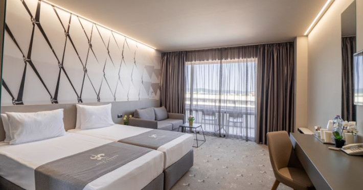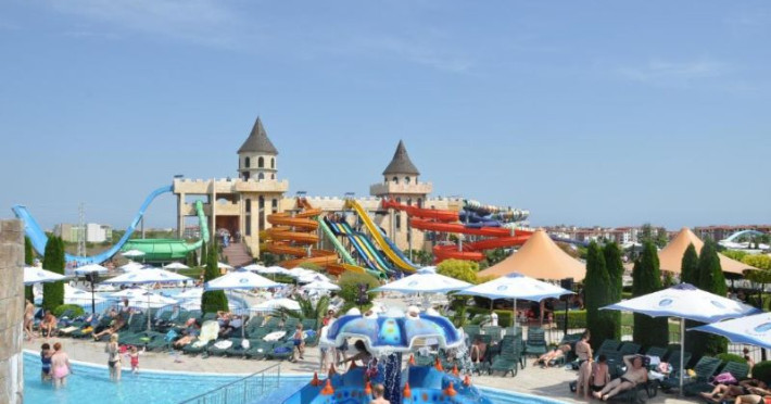 Aqua Paradise Resort este situat la doar 500 de metri distanță de malul mării, pe drumul principal care leagă Burgas de Varna. Înconjurat de o zonă verde bogată, acesta se află în apropierea celui mai mare parc acvatic din Balcani. Cu o gamă impresionantă de facilități, complexul hotelier se evidențiază prin serviciile specializate pentru turiști și oportunitățile oferite pentru afaceri, activități recreative și divertisment, satisfăcând astfel nevoile fiecărui vizitator.Facilități hotel