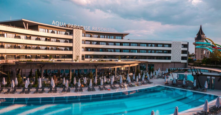 Aqua Paradise Resort is a newly established (2018) and highly modern complex situated next to the biggest Aquapark in the region - Aquapark Paradise! Its architecture is focused on natural and high quality materials to promote sustainability and eco-friendly image. The complex is half kilometer away from the nearest sea and it provides access to indoor and outdoor swimming pool as well as free entrance to the Aquapark Paradise in 50 metres proximity!Aqua Paradise Resort is a newly established (2018) and highly modern complex situated next to the biggest Aquapark in the region - Aquapark Paradise! Its architecture is focused on natural and high quality materials to promote sustainability and eco-friendly image. The complex is half kilometer away from the nearest sea and it provides access to indoor and outdoor swimming pool as well as free entrance to the Aquapark Paradise in 50 metres proximity!