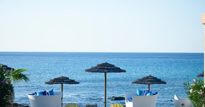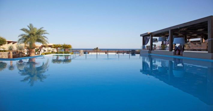 Bucătarul şef găteşte preparate din bucătăria grecească şi mâncăruri gourmet, cu ingrediente proaspete. Oaspeţii au la dispoziţie un bar lângă piscină, un lounge bar cu un dom impresionant şi un bar pe plajă cu vedere uimitoare