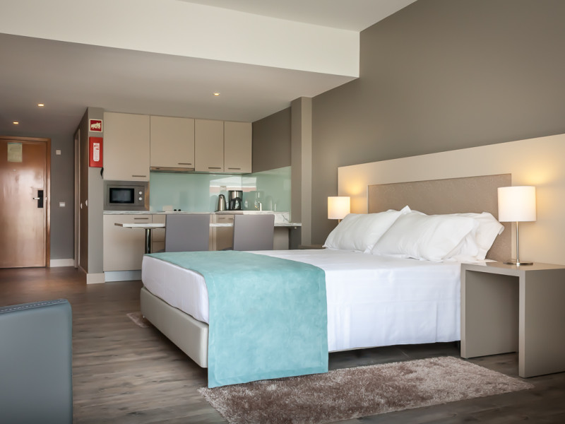 There is a large choice of accommodation to satisfy every needs. Aqualuz Lagos counts 177 apartments from one- to three bedrooms equipped, with a cozy, simple and functional decoration. Accommodations offer air conditioning/heating, equipped kitchenette (with fridge, kettle, stove and microwave), closet, sofa-bed, private bathroom with shower, amenities, hair dryer, safe, cable TV, telephone, free Wi-Fi, private balcony with furniture, electronic / magnetic key, daily room cleaning.