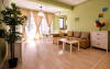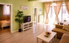 Apartamentul 110 - este situat la etajul 2 si dispune de terasa mobilata cu masa si scaune, un living cu canapea extensibila (160x200) si loc de luat masa, un dormitor matrimonial cu pat de 160x200 si inca un dormitor cu pat matrimonial de 140x200.Aer conditionat exista doar in living, iar LCD tv in toate cele 3 camere. Suprafata 65 mp.