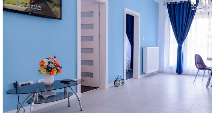 - Dormitor 1: Pat matrimonial (160 x 200 cm), TV LED diagonala 81 cm, dulap haine, uscator de par, aer conditionat