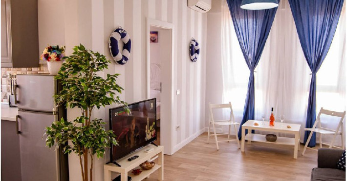 - Living: Canapea extensibila 2 persoane (160 x 200 cm), aer conditionat, dulap haine, masa si scaune pt servit mancarea, TV smart 108 cm diagonala, masa de calcat, fier de calcat, uscator de rufe