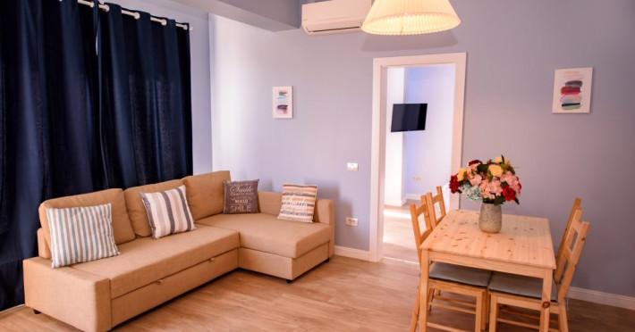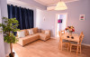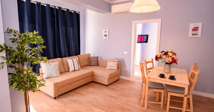Apartamentul 211 - este situat la etajul 3 si dispune de un living cu canapea extensibila (160x200) cu loc de servit masa, un dormitor matrimonial cu pat de 160x200 si o terasa mobilata. Aer conditionat exista doar in living, iar TV in ambele camere. Suprafata 48 mp.