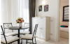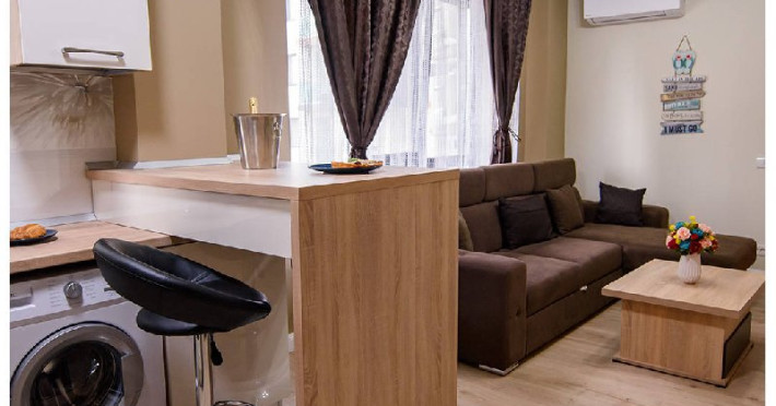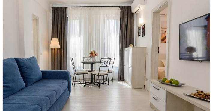 - Living: Canapea extensibila (160 x 200 cm), aer conditionat, dulap haine, masa si scaune pt servit mancarea, TV smart 108 cm diagonala, masa de calcat, fier de calcat, uscator de rufe