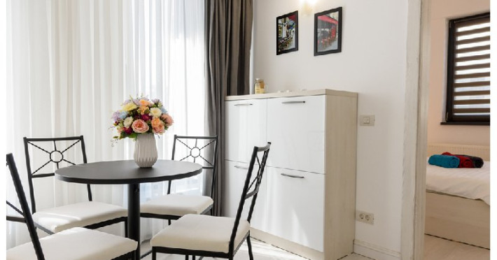 - Bucatarie: plita, hota, frigider, espressor, sandwich maker, prajitor de paine, fierbator de apa, masina de spalat rufe