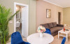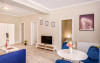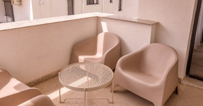 - Living: Pat matrimonial (160 x 200 cm), aer conditionat, dulap haine, masa si scaune pt servit mancarea, TV smart 108 cm diagonala, masa de calcat, fier de calcat, uscator de rufe