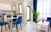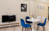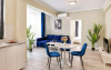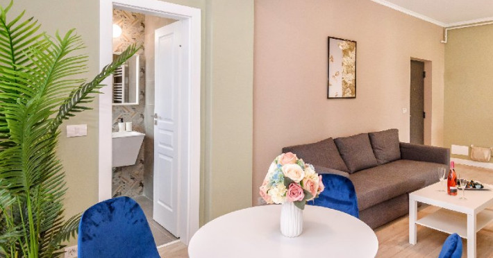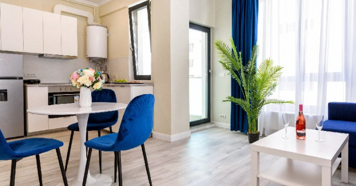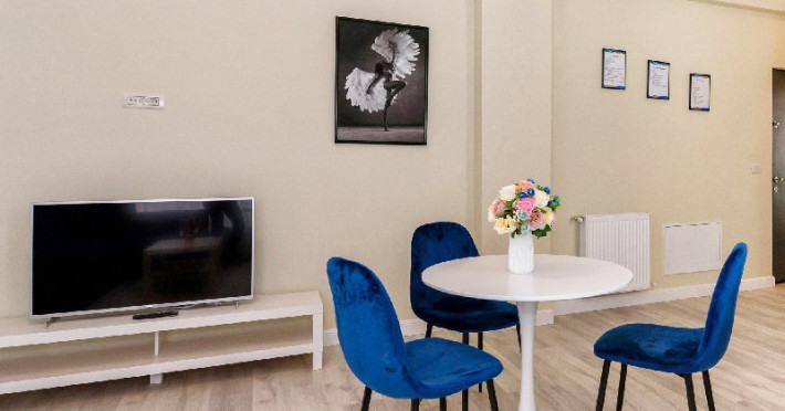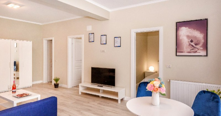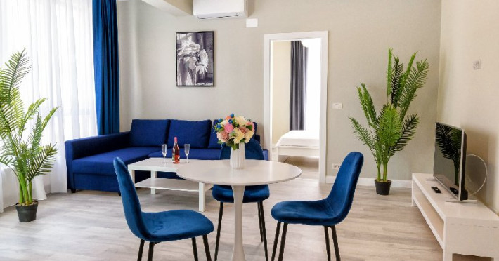 - Living: Canapea extensibila (160 x 200 cm), aer conditionat, dulap haine, masa si scaune pt servit mancarea, TV smart 108 cm diagonala, masa de calcat, fier de calcat, uscator de rufe