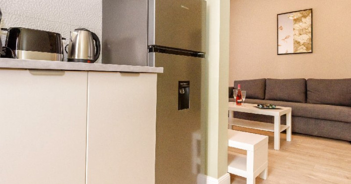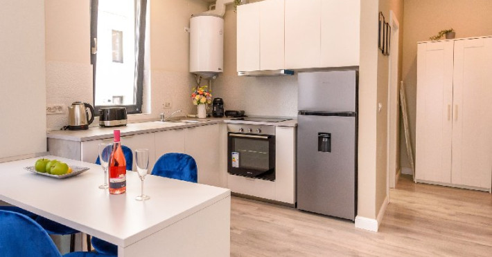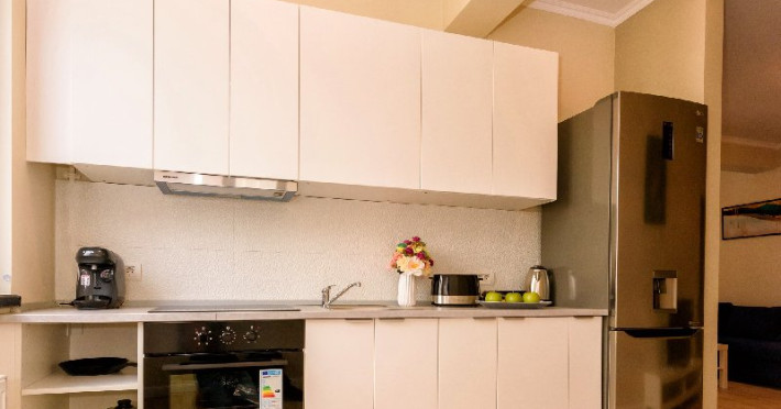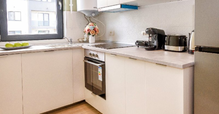 - Bucatarie: plita, hota, frigider, espressor, sandwich maker, prajitor de paine, fierbator de apa, masina de spalat rufe