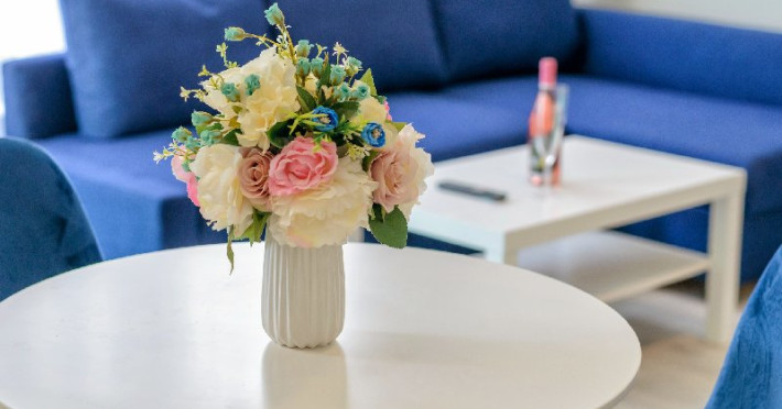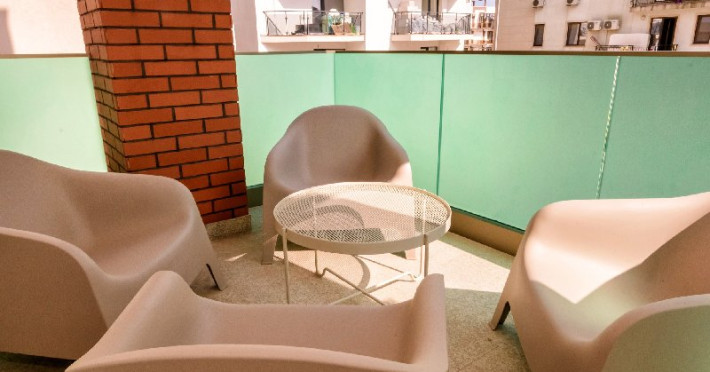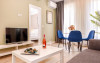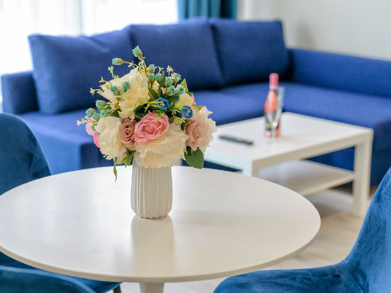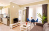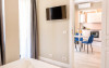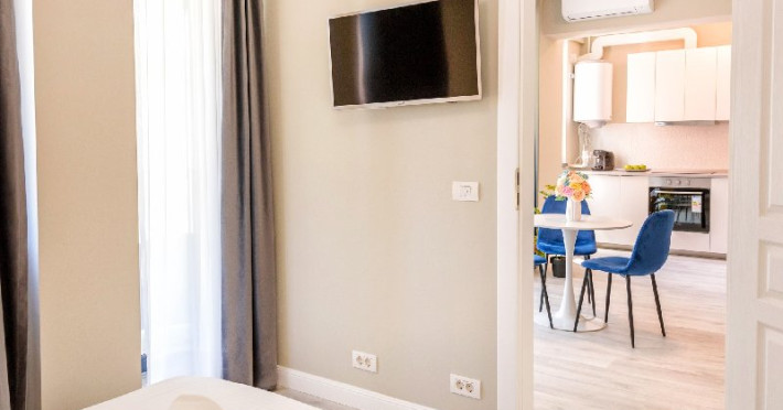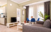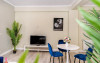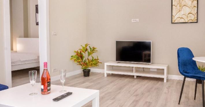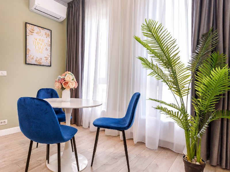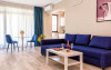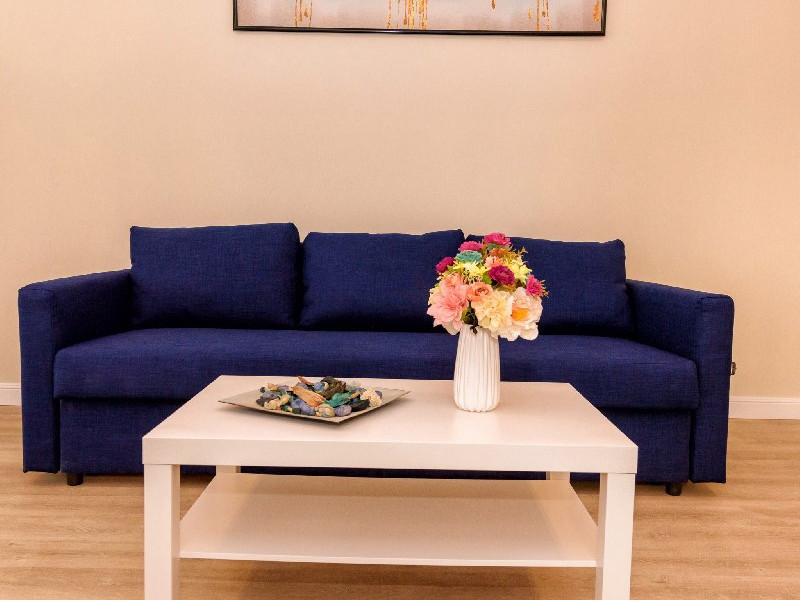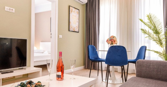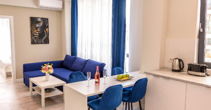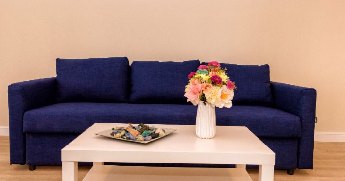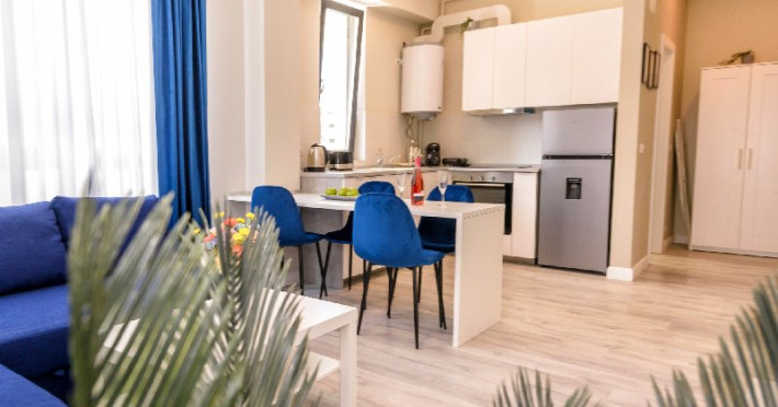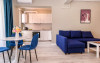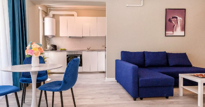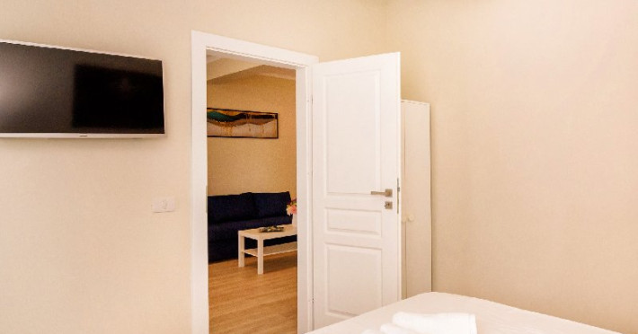 Living : Canapea extensibila 2 persoane (160 x 200 cm) , aer conditionat , dulap haine , masa si scaune pt servit mancarea , TV smart 108 cm diagonala , masa de calcat , fier de calcat , uscator de rufe
