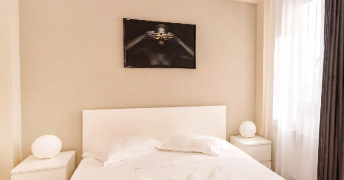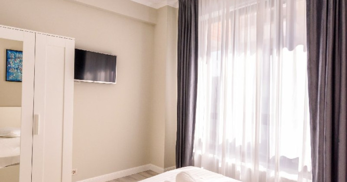 Dormitor 1 : Pat matrimonial (160 x 200 cm) , TV LED diagonala 81 cm , dulap haine , uscator de par , aer conditionat