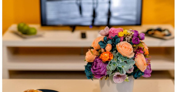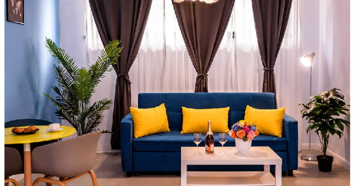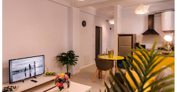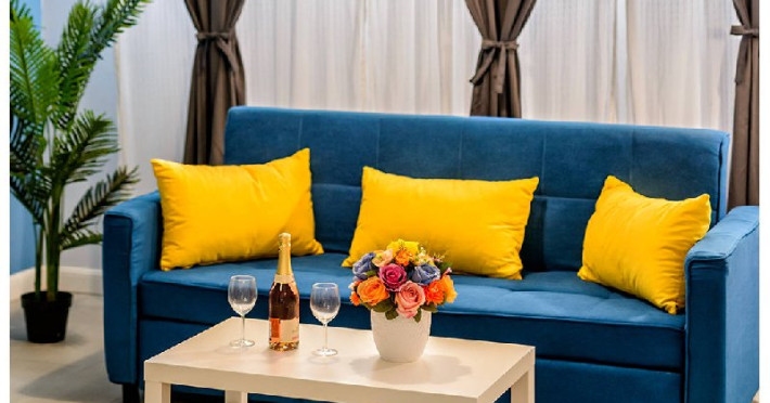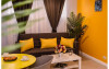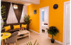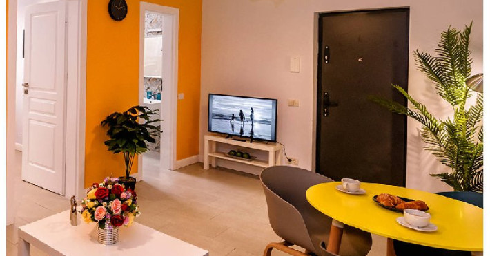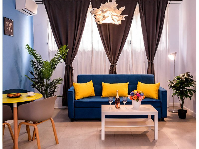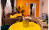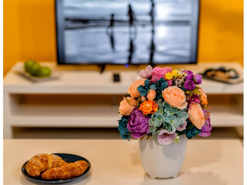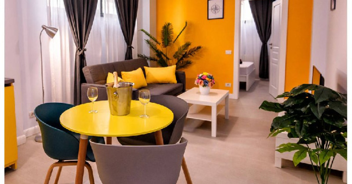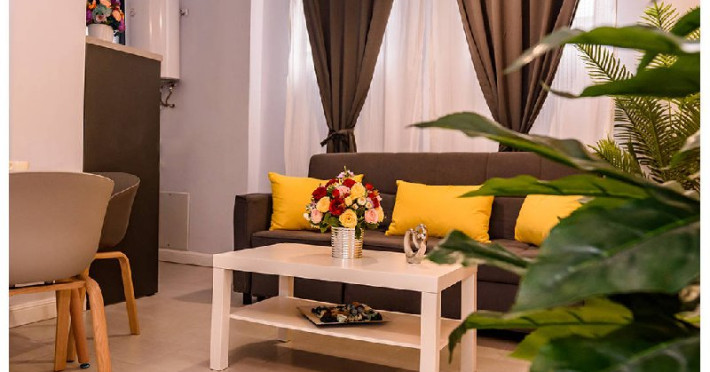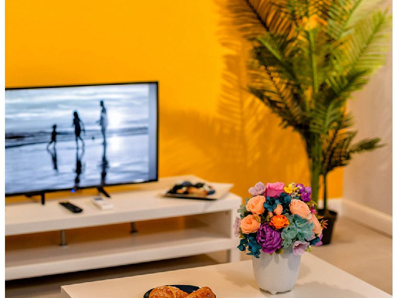 Living : Canapea extensibila 2 persoane (160 x 200 cm) , aer conditionat , dulap haine , masa si scaune pt servit mancarea , TV smart 108 cm diagonala , masa de calcat , fier de calcat , uscator de rufe