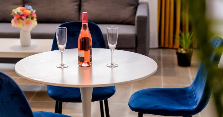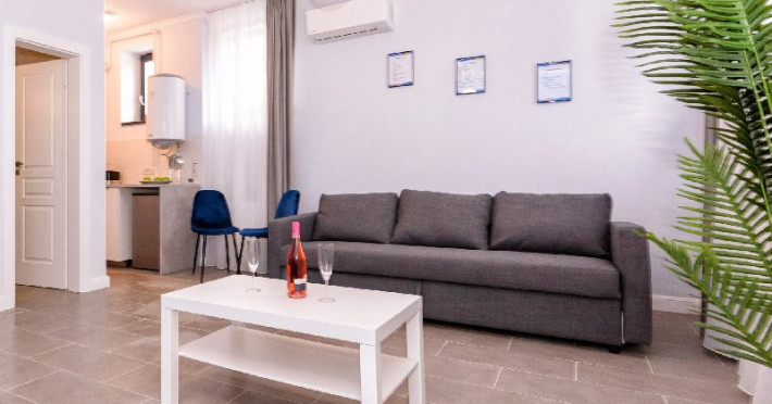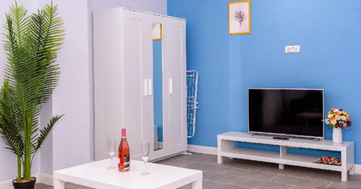 - Living: Canapea extensibila (160 x 200 cm), aer conditionat, dulap haine, masa si scaune pt servit mancarea, TV smart 108 cm diagonala, masa de calcat, fier de calcat, uscator de rufe