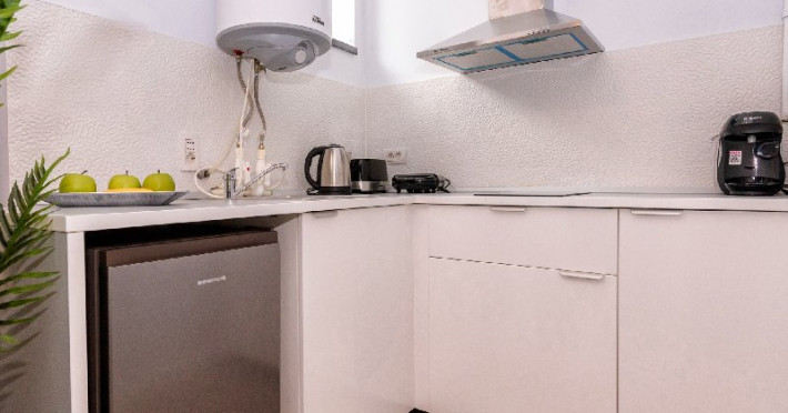 - Bucatarie: plita, hota, frigider, espressor, sandwich maker, prajitor de paine, fierbator de apa, masina de spalat rufe