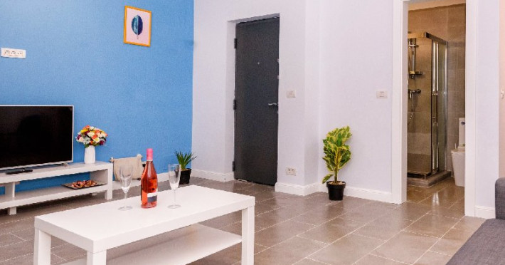 - Living: Canapea extensibila (160 x 200 cm), aer conditionat, dulap haine, masa si scaune pt servit mancarea, TV smart 108 cm diagonala, masa de calcat, fier de calcat, uscator de rufe